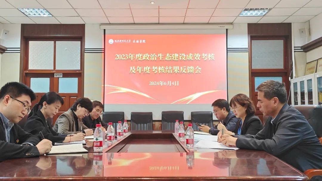 在社科楼313会议室召开2023年度政治生态建设成效考核及年度考核结果反馈会。校党委副书记李庆霞出席会议并讲话。校党委常委、组织部部长刘可心,校纪委办公室副主任李卿博,院党委书记包志伟,院长王琪,副院长王洋,副处级辅导员史许福参加会议。反馈会由包志伟主持。