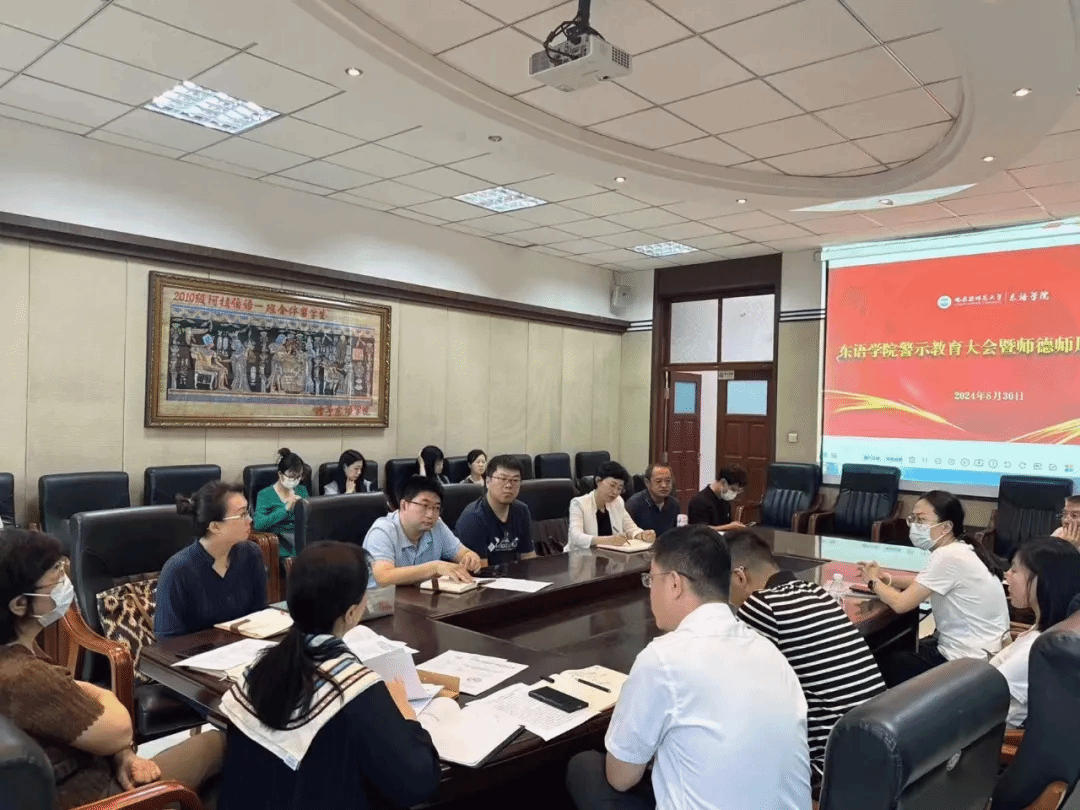 教师师德失范行为处理办法》进行详细解读。警示全院教职工要严守师德师风底线,从思想上高度重视师德师风建设的严峻性,要从典型案例中汲取教训,引以为戒。会议强调,师德师风建设是教师队伍建设的灵魂,是教育事业的根本保障,也是抓好勤廉师大建设的重要一环。全体教师要认真学习教育家精神,深刻认识到师德师风建设的重要性,时刻保持清醒头脑,坚守教育初心,牢记育人使命,做到以德立身、以德立学、以德施教、以德育德,将良好师德师风贯穿勤廉师大建设,为建设勤廉师大贡献东语力量。会议要求,一要将师德师风建设与党纪学习教育成果相结合,深入学习习近平总书记重要讲话和指示精神、学习《条例》、学习学校相关会议精神,通过专题学习、研讨交流等,提高教师政治素养与思想道德水平;二要将师德师风建设与能力作风建设相结合,践行教育家精神,将师德师风建设落实到学院的教学工作中,各系、部门和各位教师要密切结合工作实际,深刻反思工作中存在的差距,深入查找、深刻剖析师德、师风等方面存在的突出问题,增强责任意识;三要将师德师风建设与政治生态工作相结合,加强监督正师风,学院党员干部要坚持“严”字当头、“实”字托底,既真抓实干,又善作善成,既严于律己、严负其责,坚持师德师风第一标准,对师德失范行为“零容忍”,有效避免违规违纪问题的发生。本次会议提升了党员干部勤廉修养,增强教职工廉洁意识,进一步引导全院党员干部坚定理想信念,筑牢思想底线,守好廉洁红线,为全院营造风清气正的干事创业氛围提供保障,为我校建设成为勤廉师大有效助力,为建设“国内一流师范大学”贡献力量。