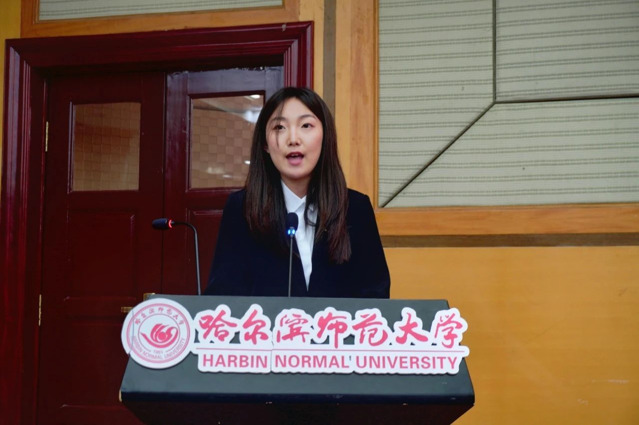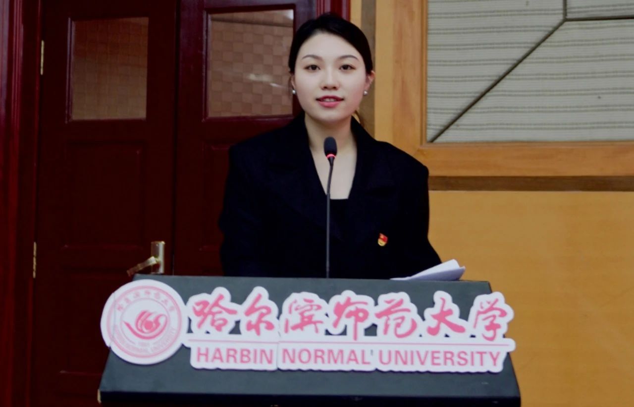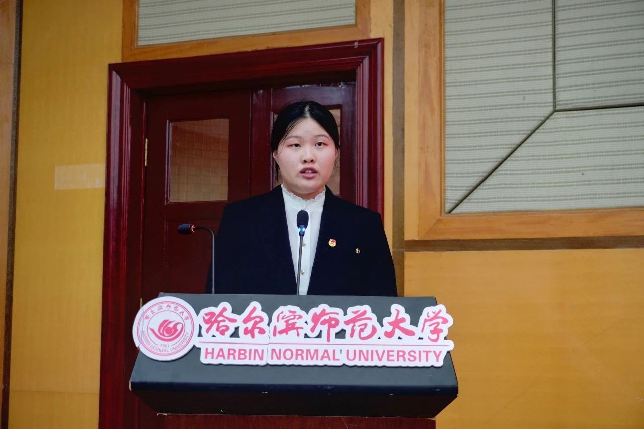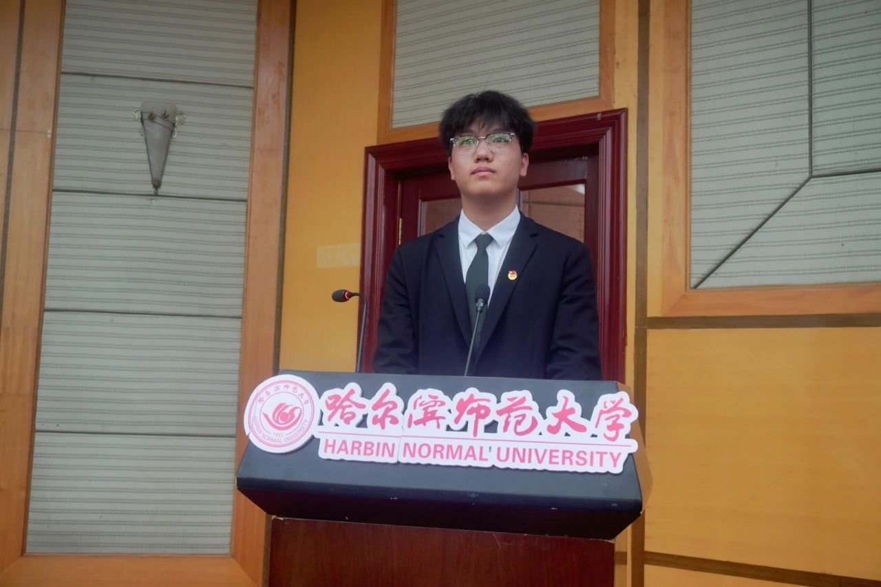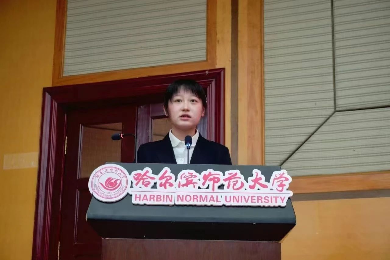 本科生新生代表、2024级日语师范专业二班陈畅表示作为新时代青年,我们不仅要学习专业知识,更要培养综合素质,提升自我修养,以真才实学为凌云之志而奠基,以开放的心态相互帮助、共同进步。让我们将个人理想与家国情怀紧紧地联系在一起,形成更强有力的信仰,努力成为优秀的哈师大人,为实现中华民族伟大复兴贡献自己的青春力量。