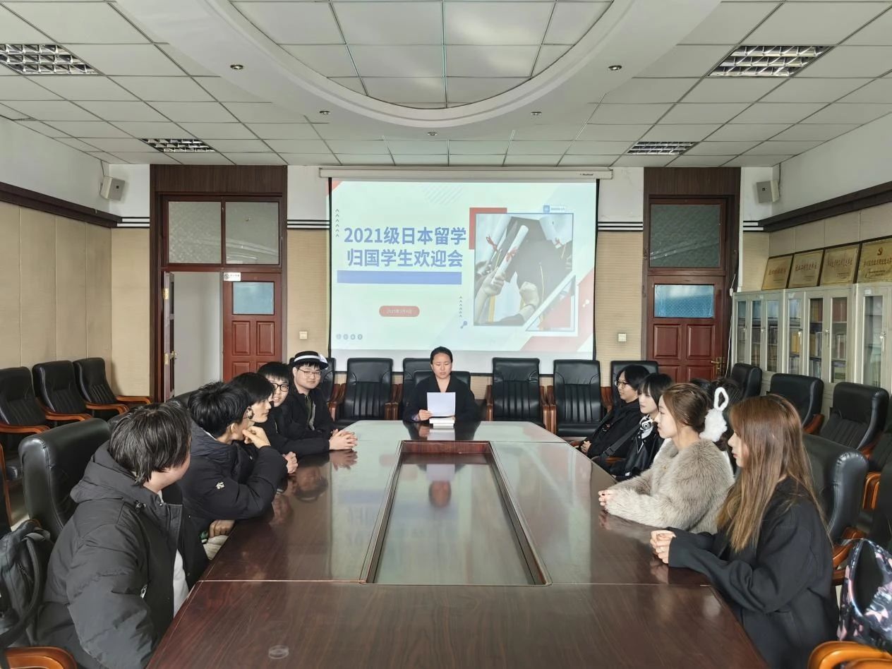 在社科楼313会议室隆重举行欢迎会。本次欢迎会由日语系主任蔡雨教授主持,10名赴日留学归国学生参与此次活动。