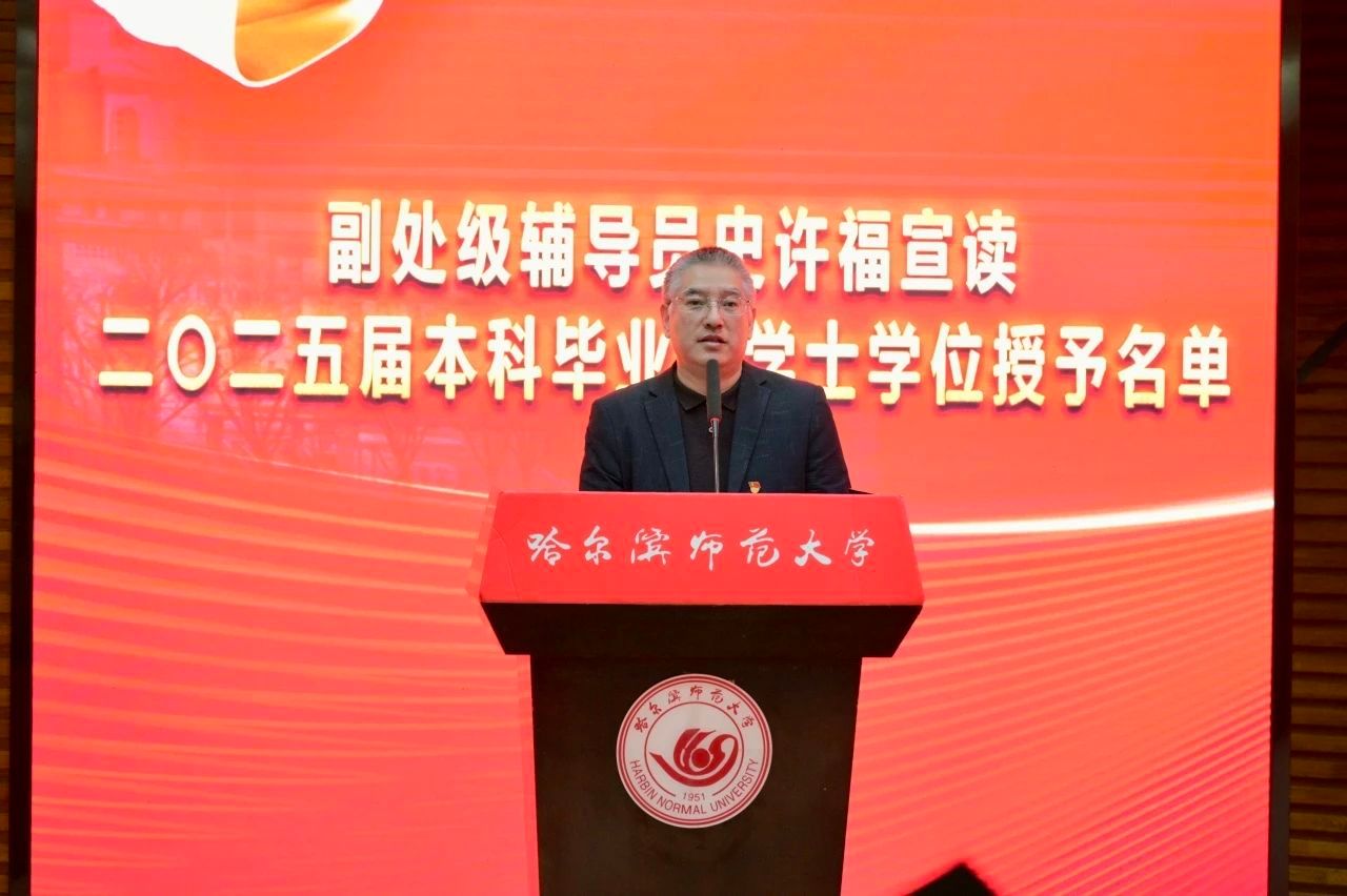 王琪深情回顾了毕业生们四年的成长,肯定了他们在校园方方面面的付出与收获。她鼓励同学们积极面对未来,不惧迷茫焦虑,无论选择国际舞台或扎根基层,亦或是积蓄力量等待时机,都要秉持热爱、坚守初心,踏实追梦,保持积极进取的心态。最后,她表示母校永远是同学们的后盾,并对2025届本科毕业生寄予美好祝愿。