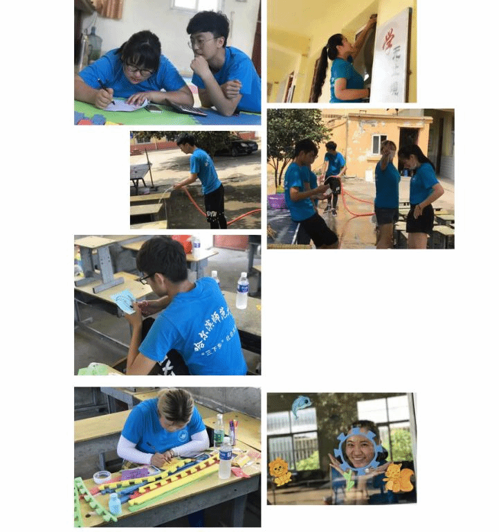 7月23日,五位队员于吉林省长春火车站集合出发,在火车上历经一天一夜的颠簸终于来到了本次爱心支教活动的目的地——河南省南阳市庞庄村庞庄小学。下车后受到了庞庄小学校长的热情接待,当地三十八度的烈日酷暑并没有浇灭队员们支教的热情。在简单的行李整顿之后,队员们迅速打起精神开始清洁桌椅、布置教室为明天的夏令营招生工作做准备。