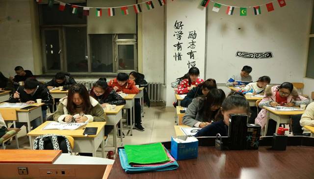 在社科楼224、319室分别举办了日语、阿拉伯语专业书法比赛,日语系主任蔡雨、阿拉伯语系宋佳伯、辅导员董天时及部分学生参加了本次比赛。
