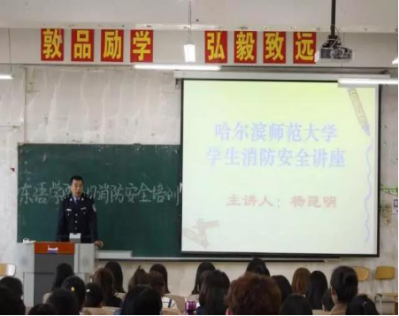 杨昆明老师根据自己多年丰富的工作经验为同学们介绍了火灾发生的原因、应对火灾的方法。特别强调了宿舍火灾的预防,火灾时自救方法及火灾时的逃生技巧。杨老师详细生动的列举了近年来校园内外发生的火灾案例,指出高校宿舍内使用违章大功率电器、寝室乱拉电线的安全隐患,强调保持宿舍周边安全通道畅通的重要性。杨老师还重点介绍了灭火器的使用方法和拨打火警电话时的注意事项,并提醒同学们遇到火灾要保持冷静,迅速逃离,第一时间拨打保卫处报警电话,始终把生命安全放在第一位。