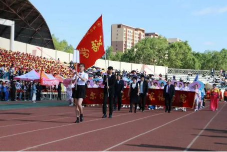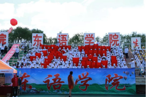 检阅队伍走过主席台,用自信的笑容,坚定的步伐了接受大会检阅。日语,朝鲜语,阿拉伯语,三种语言的学子步调整齐划一,仪态落落大方,精神饱满,展现了学院师生良好的精神风貌。