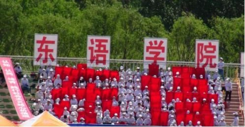 1.2.3.4.......迎风飘动的红绸,伴随着声声有力的呐喊,“新时代”、“奋斗”、“知行合一”等充满新时代气息的口号像电子屏一样在东语的观众队伍上展现,凝固成一道永恒绚丽的风景,赢得了全校师生的阵阵掌声。这就是搜搜啪