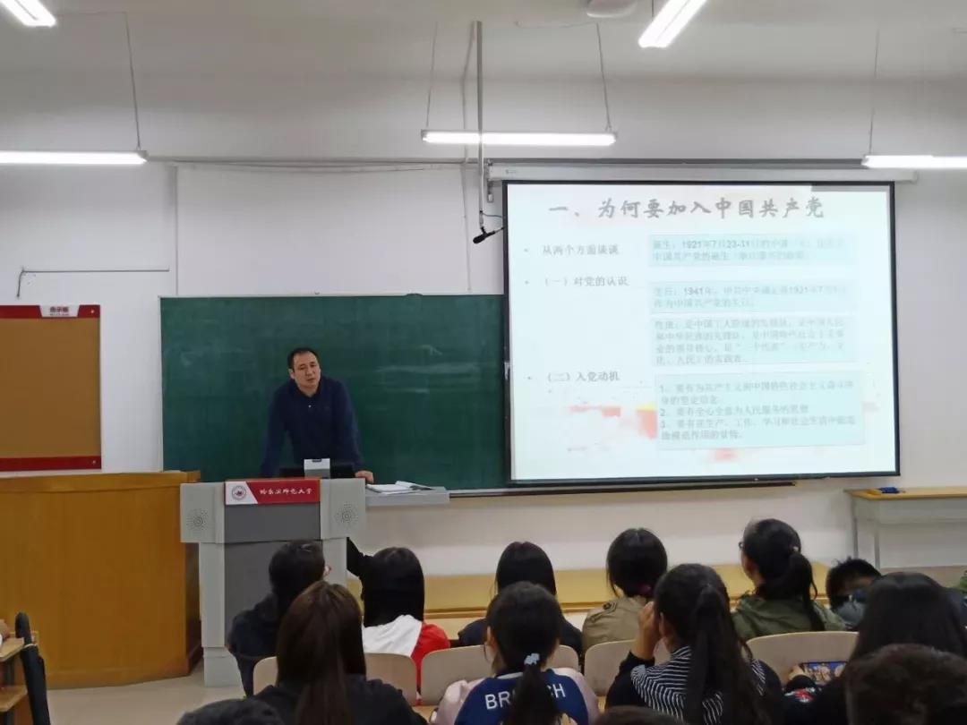 齐国涛向同学们介绍了大学生入党的基本条件、基本程序,详细讲解了入党申请书、思想汇报的书写要求,以伟人的奋斗成长之路和身边优秀党员的故事为例,从他们的“激情燃烧”的青春梦想,“忠于人民”的价值情怀,“坚定执着”的使命担当,“知行合一”的实干精神等四个方面向同学们阐述为什么要加入中国共产党,如何以实际行动争取早日入党。齐国涛结合实际工作对大学生提出了十点建议,鼓励同学们在新时代下勇担责任,自立自强,遵守学校纪律,认真学习,充实四年大学生活,不断以实际行动向党组织靠拢。