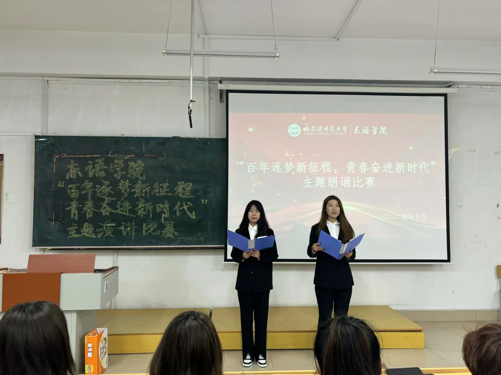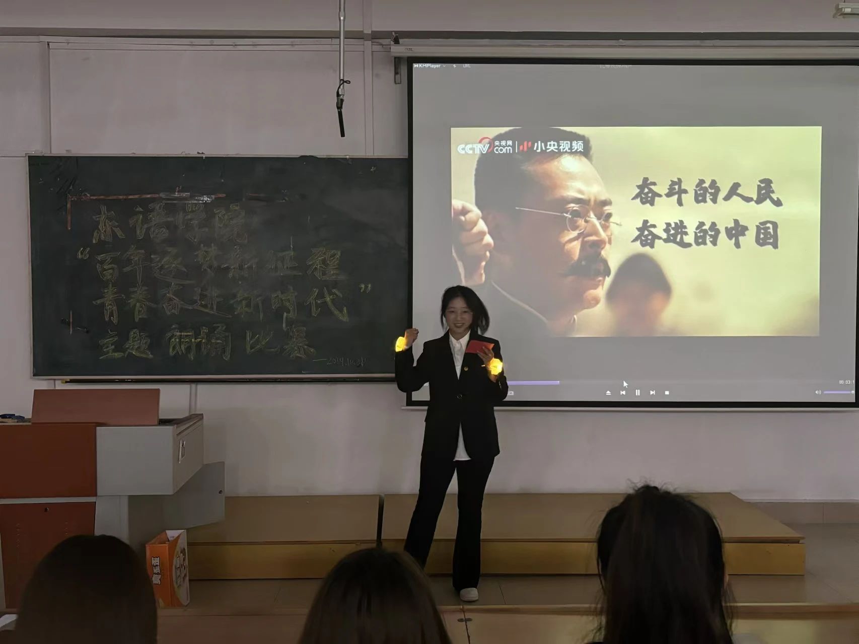 在社科楼452教室举办“百年逐梦新征程 青春奋进新时代”朗诵比赛。