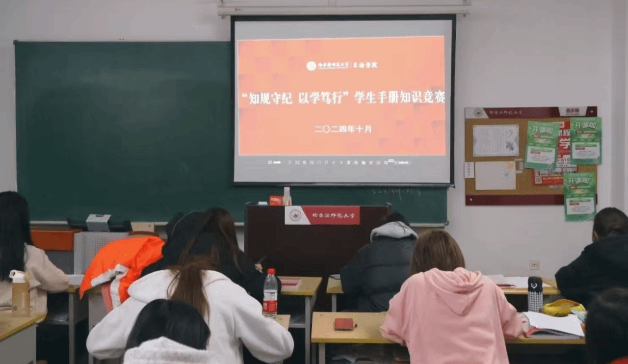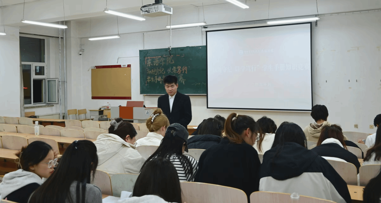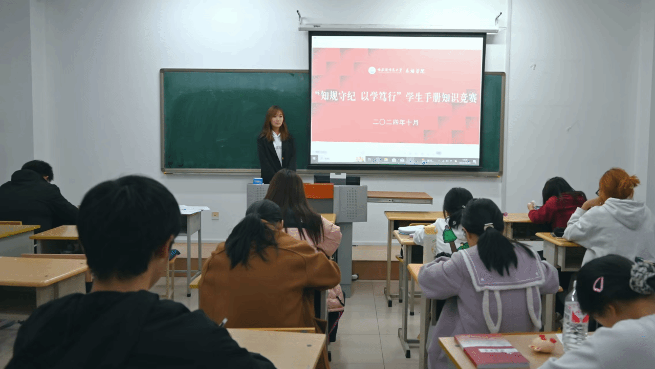 在社科楼452教室、2024级新生本班教室开展“知规守纪 以学笃行”学生手册知识竞赛活动。