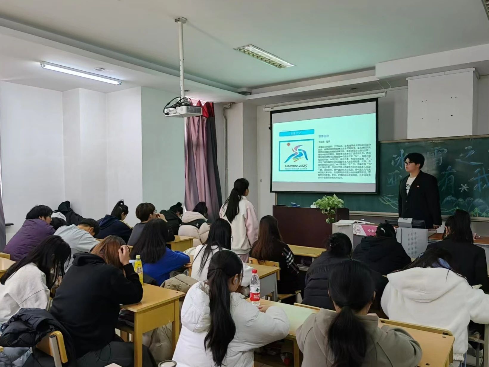 各团支部对本次活动十分重视,活动形式丰富多样,通过观看视频、讲解ppt、小游戏等形式向同学们详细介绍了亚冬会的历史、发展历程、比赛项目、举办意义等内容,寓教于乐,增进了同学们对亚冬会的了解与认识,呼吁同学们以高度的热忱和使命感积极投身于亚冬会志愿活动,为亚冬会助力添彩。