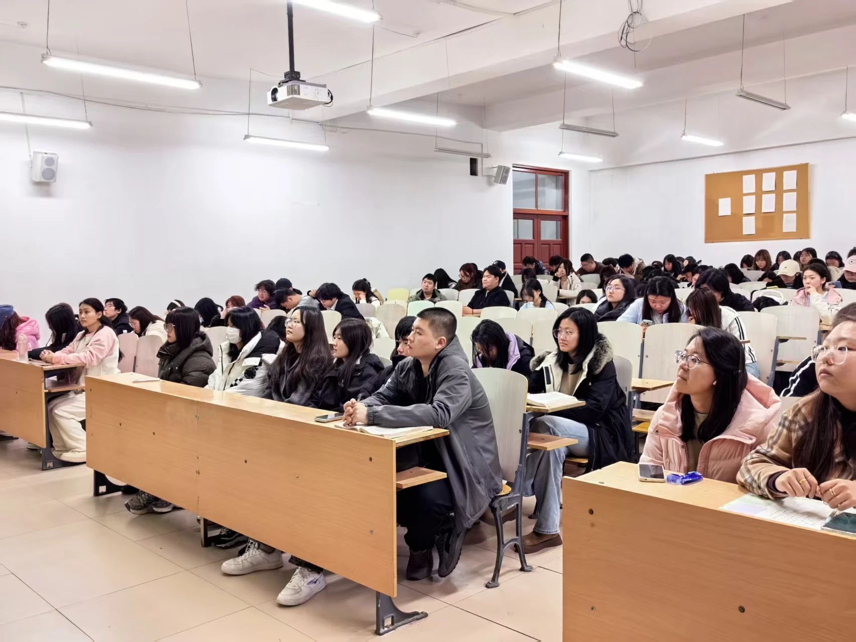 在社科楼452教室举办图书馆宣讲活动,2024级全体学生参加活动。