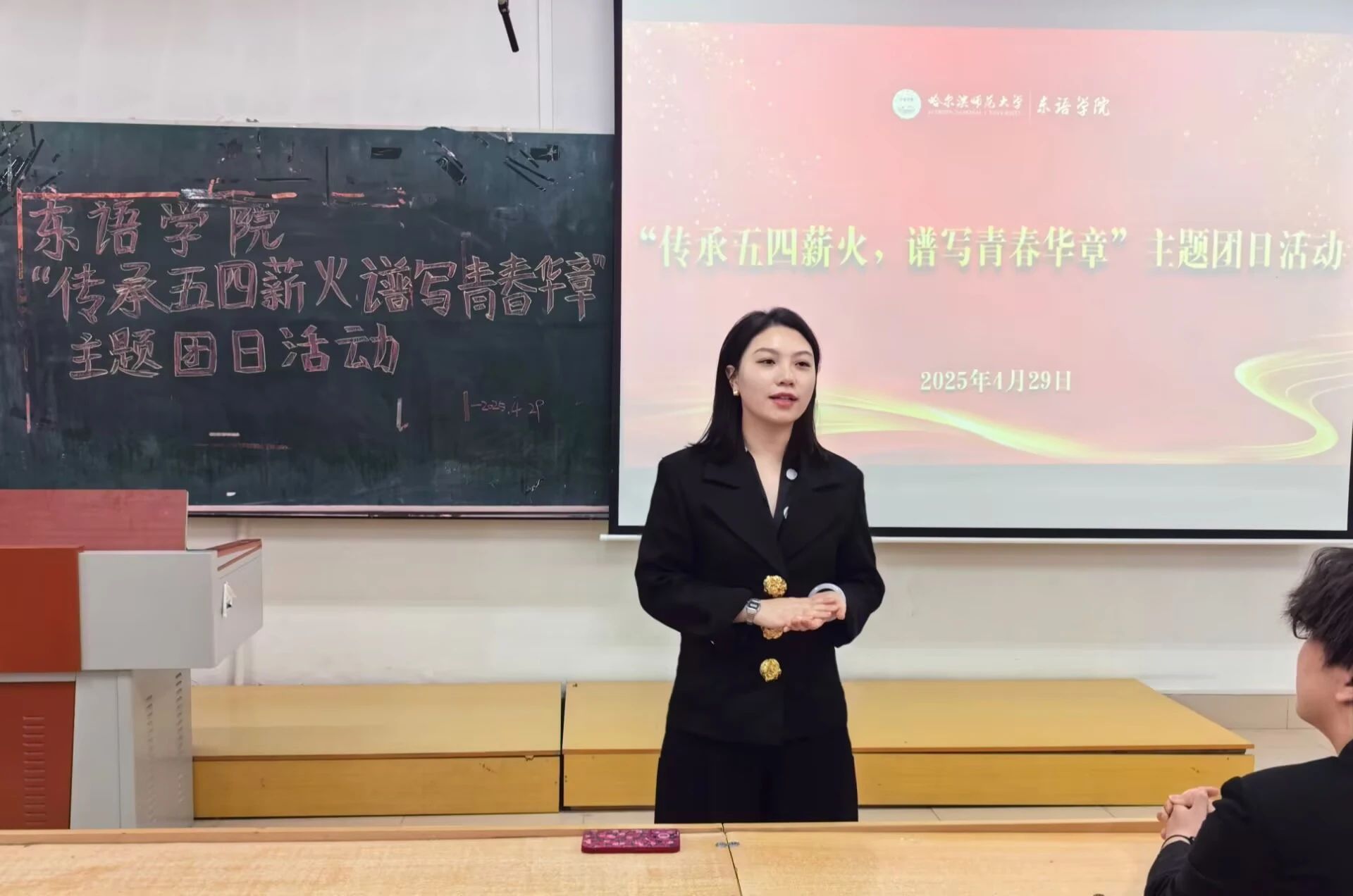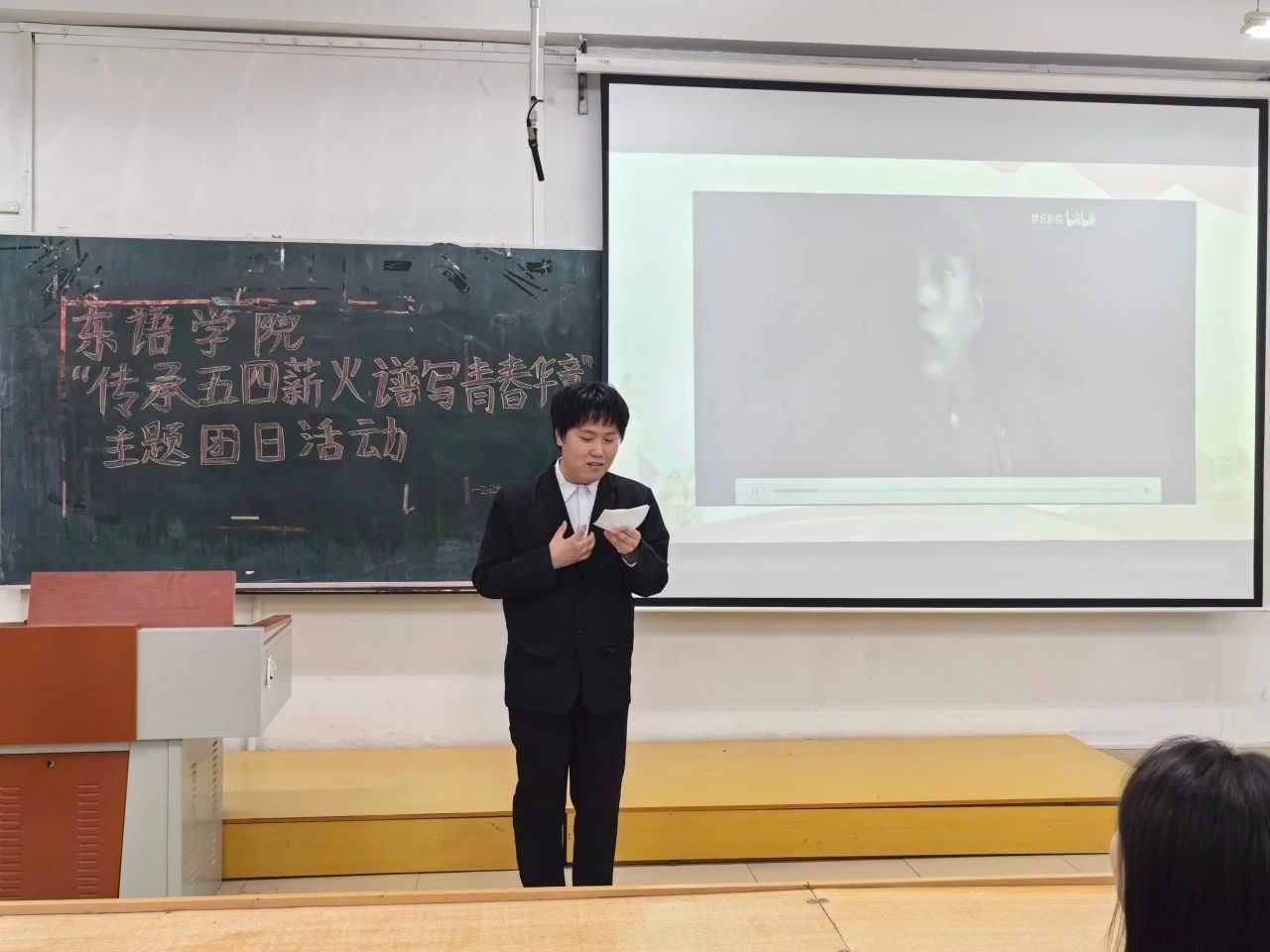 团委在社科楼452教室开展“传承五四薪火 谱写青春华章”主题团日活动。学院团委负责人、2024级辅导员杨博文参加此次活动。