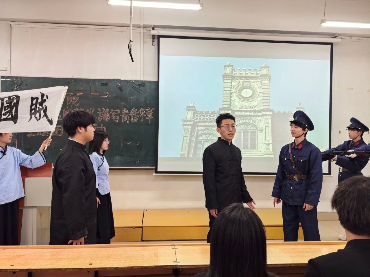活动最后,杨博文表示本次活动既是对五四精神的生动诠释,更是对同学们奋进的有利动员。她勉励同学们,一是要坚定理想信念,筑牢信仰之基,以先辈为榜样,将红色基因转化为实际行动,成为中国特色社会主义共同理想的坚定信仰者和忠实实践者。二是要练就过硬本领,提升自身能力,努力学习、勇于探索、积极实践,为青春赋能,为社会发展贡献专业智慧。三是要勇于担当作为,积极投身实践,踊跃参与各类活动,在实践中磨砺意志、增长才干,以实干诠释青春担当。
