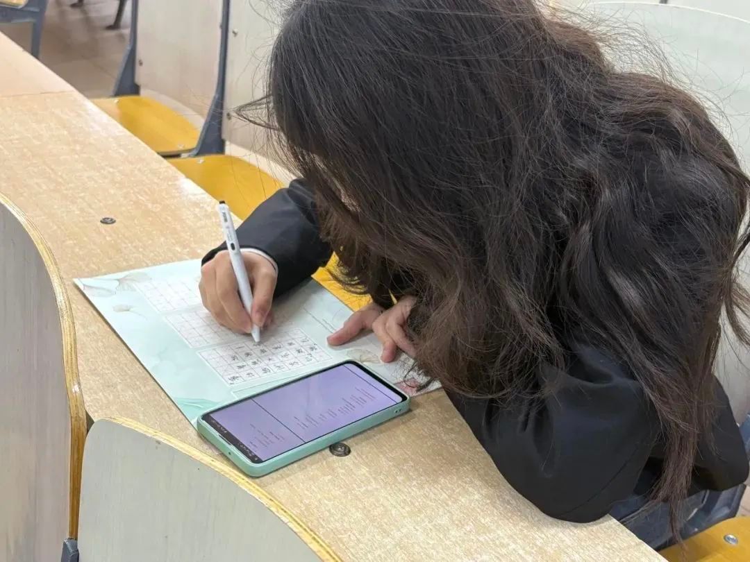 比赛现场,同学们全神贯注、热情高涨,全身心投入到书写创作中。以硬笔、软笔等多元形式,将平假名的圆润流畅、片假名的刚劲利落与汉字的端庄典雅完美融合。运笔行云流水,收放自如,一笔一划间不仅体现出日语系同学们扎实的书法功底,更生动诠释了搜搜啪