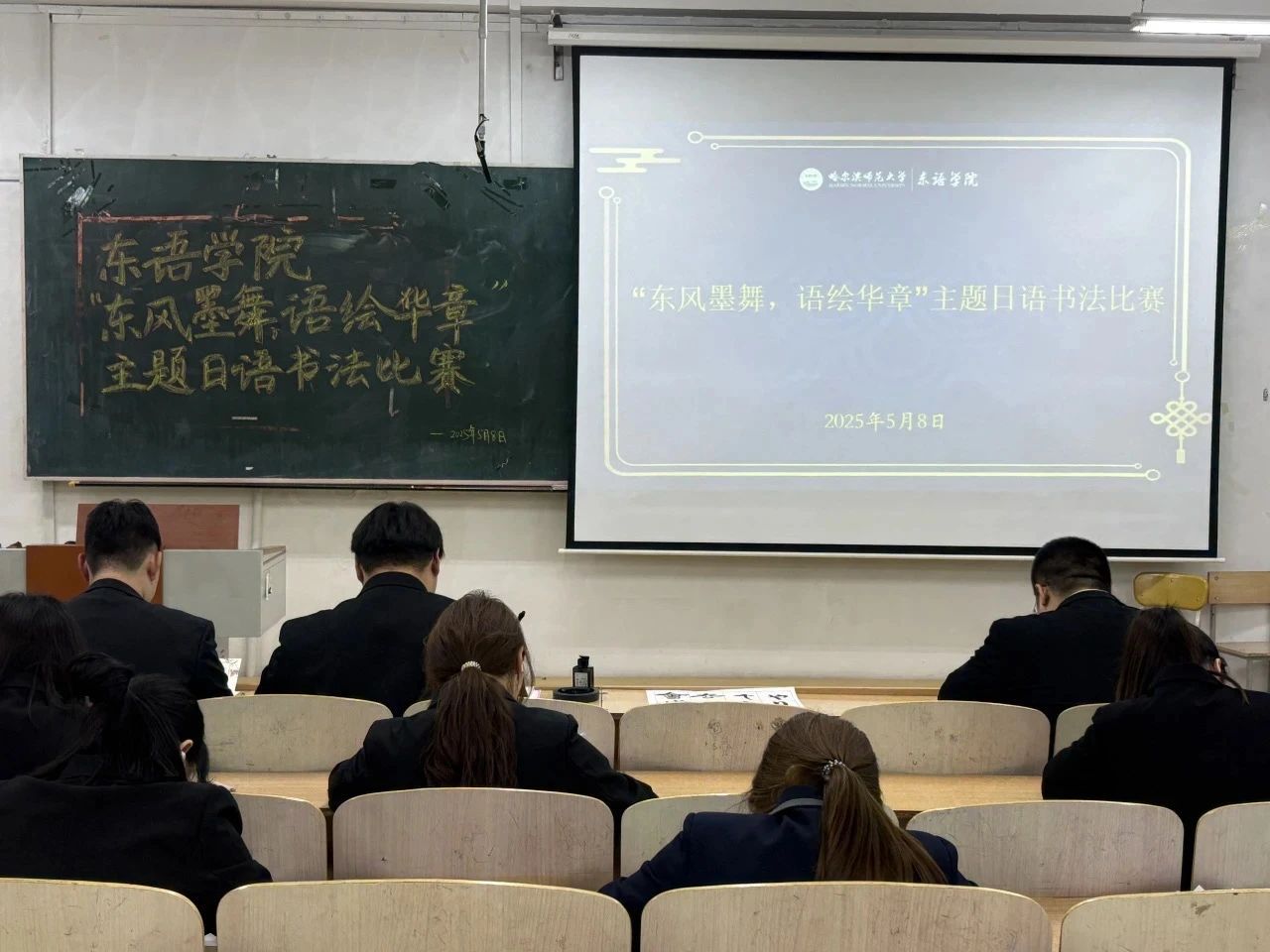 在社科楼452教室开展“东风墨舞 语绘华章”日语书法比赛。