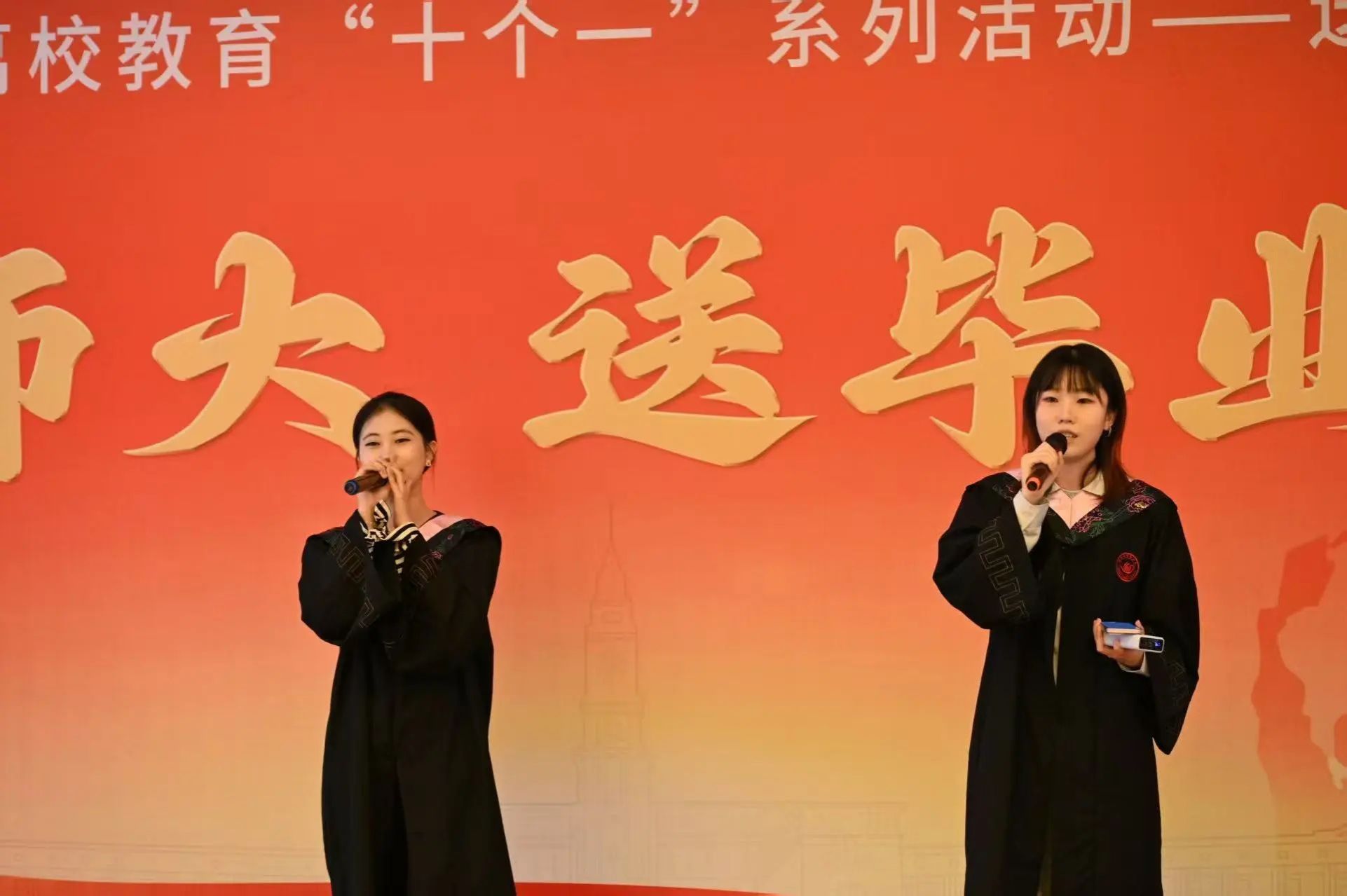 杨博文娓娓道来与同学们共度的四年时光,从初入大学的青涩身影,到如已蜕变成目光坚定、步履从容的追光者,每一个变化都让她倍感欣慰。临别之际,她向同学们送上三点殷切嘱托:一是别忘了“种太阳”的能力,永远怀揣希望与温暖;二是记住同窗间的"独家记忆",让珍贵情谊长存心间;三是带着"破茧"的勇气去奔跑,无畏挑战、勇敢追梦。一字一句,饱含不舍与牵挂。最后,她以最真挚的祝福,为即将踏上新征程的同学们深情送别。