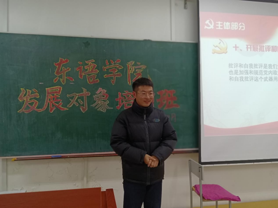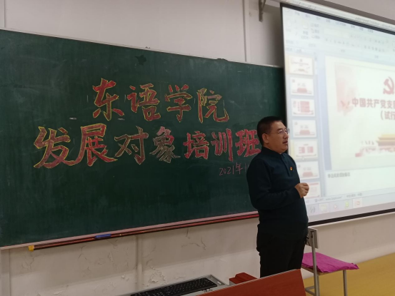 党委副书记李晓杰、研究生党支部书记王敬国、本科生第二党支部书记史许福、2020级辅导员陈彦伟、2021级辅导员杨博文主讲,涵盖了习近平新时代中国特色社会主义思想、党的基础知识、党规党纪等基本理论的深入解读,重点进行了《中国共产党章程》、《中国共产党纪律处分条例》、《关于新形势下党内政治生活的若干准则》、《中国共产党支部工作条例(试行)》以及习近平总书记“七一”重要讲话精神、党的十九大报告等内容的学习。同时将党史学习与党员发展对象培训工作相结合,将其贯穿于培训工作的始终。