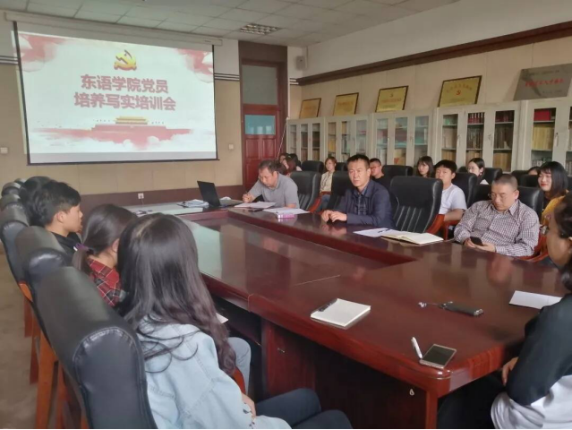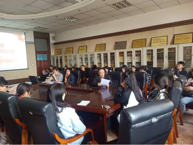 党委书记安耀林、副书记李晓杰和学生党支部书记出席,学院全体学生党员、发展对象、各班团支部书记参加培训会。