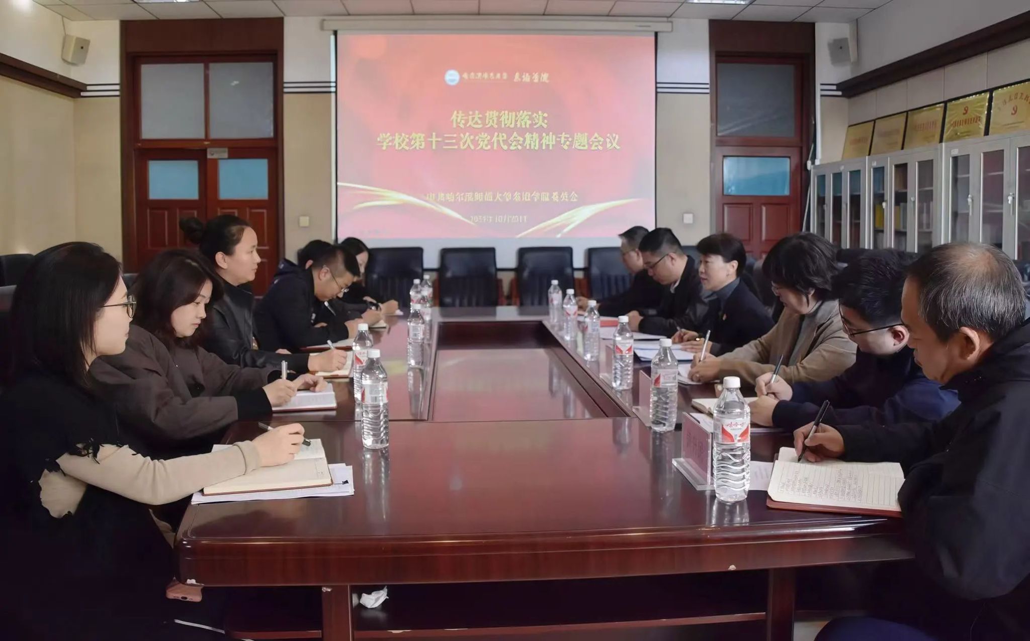 在社科楼313会议室召开专题会议,传达学习贯彻学校第十三次党代会精神,安排部署贯彻落实工作。东语党委书记包志伟主持会议并讲话。学院领导班子成员,院办、教科办、学工办、系主任及各党支部书记参加会议。