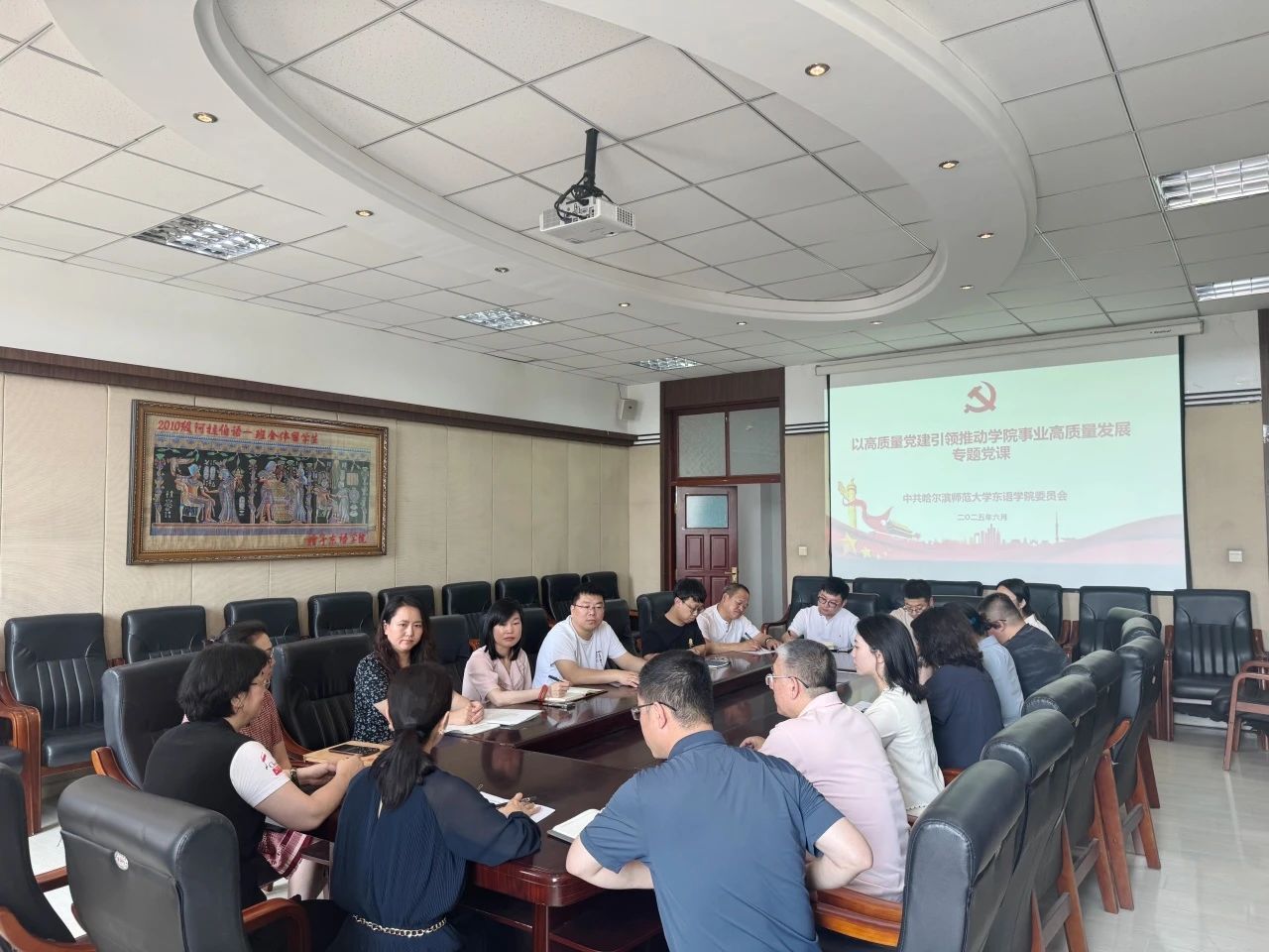 会议强调要提高政治站位,坚持以习近平新时代中国特色社会主义思想为指导,以高尚的师德师风、扎实的专业素养,为学生成长成才保驾护航,为学院的高质量发展提供坚实的政治保障和思想引领。要推动学院党建工作与中心工作有效融合。全体党员要坚持“方向融合、思想融合、任务融合”,聚焦中心工作,发挥示范引领,让党旗始终高高飘扬在学院事业发展第一线。要聚焦使命担当,高站位谋划发展战略,绘就事业发展新蓝图。明确外语教育在国家发展中的重要战略地位,将思想政治教育贯穿于语言教学的全过程。要聚焦担当作为,高水平改善教学环境,注入干事创业新动能。聚焦师生日常关切,精准施策,优化教学环境,激发师生的积极性。通过改善师生的学习与工作条件,不断提升学院的教育教学质量,增强学院的凝聚力和吸引力,推动学院在教学、科研、人才培养等方面取得更大突破,为培养更多优秀的外语人才贡献力量。要凝心聚力,高标准落实工作任务,谱写学院发展新篇章。深刻认识学院担负“弘扬中华文化,传播中国声音”的历史使命,深入把握学院发展的阶段性特征和主要任务,着力加强党的全面领导,凝心聚力、振奋精神,以高质量党建引领推动学院事业高质量发展,推动学校国内一流师范大学建设实现新跃升、开创新局面。