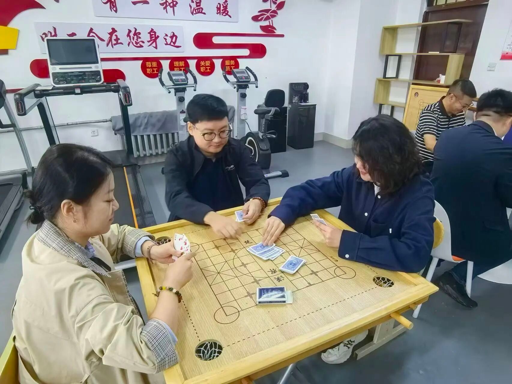 各位老师暂时放下繁忙的工作,齐聚一堂,在方寸牌桌间展开趣味盎然的智力互动。现场气氛热烈而融洽,整个过程充满了欢声笑语,大家以牌会友,切磋技艺,既展现了思维的敏捷,也体现了良好的竞技风度。教职工们沉浸在棋牌的乐趣中,既体验着休闲活动的惬意,又在互动中增进了彼此的了解,笑容里满是轻松与愉悦。