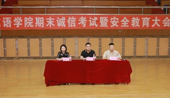 在体育馆举行诚信考试暨安全教育大会。学院党委副书记徐慧文,学工办副主任陈彦伟,2021 级辅导员杨博文出席大会。学院全体学生参加大会。会议由陈彦伟主持。