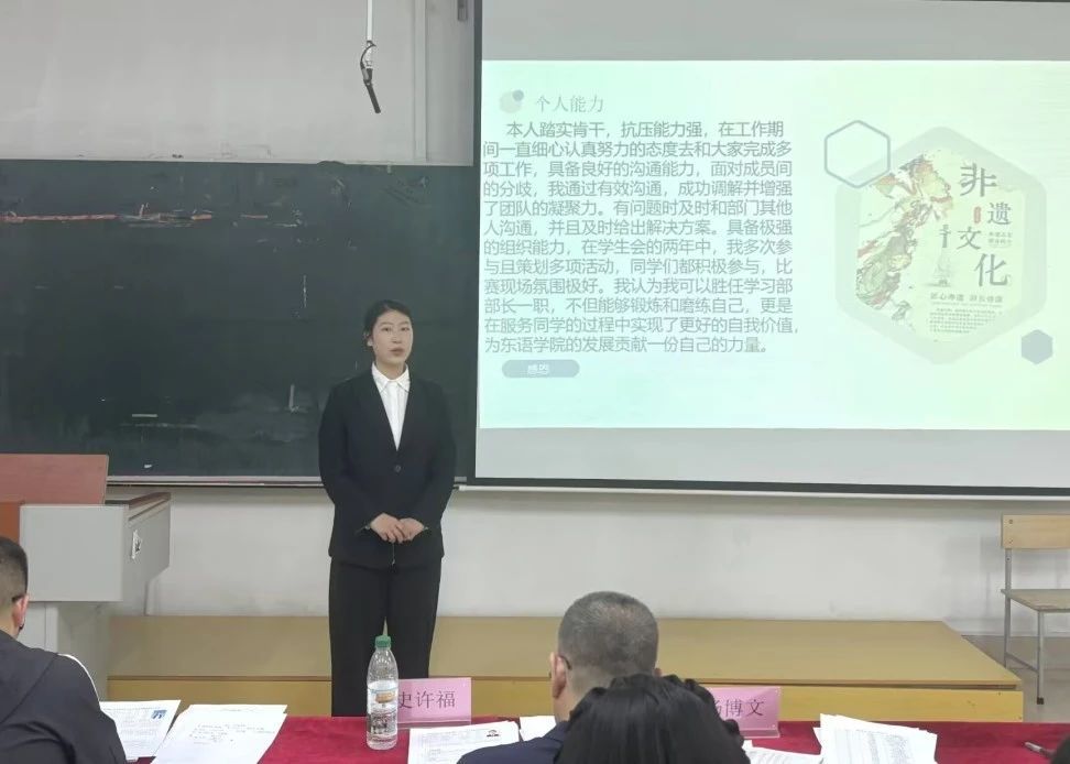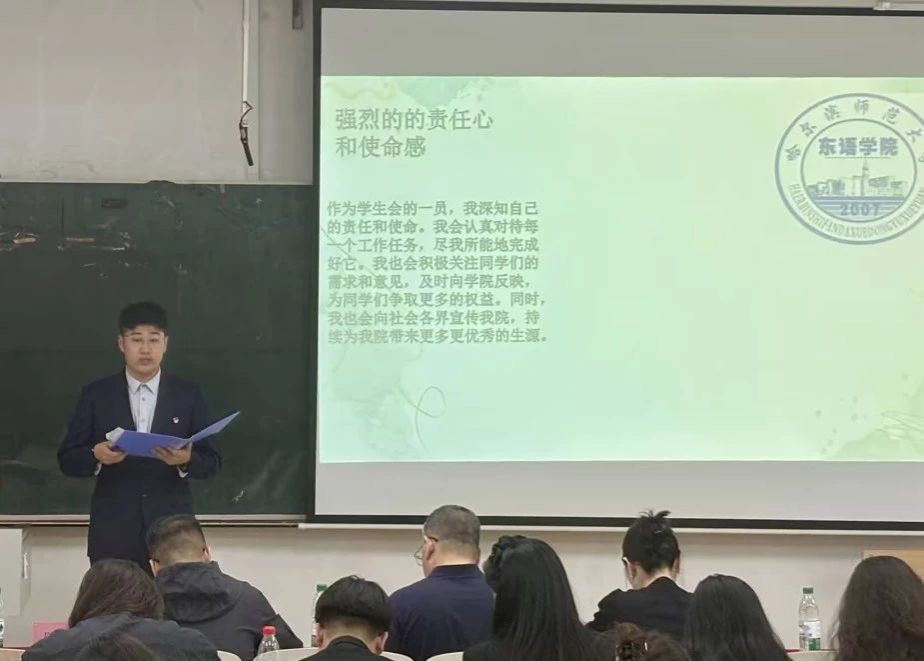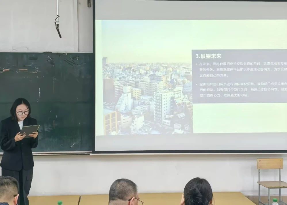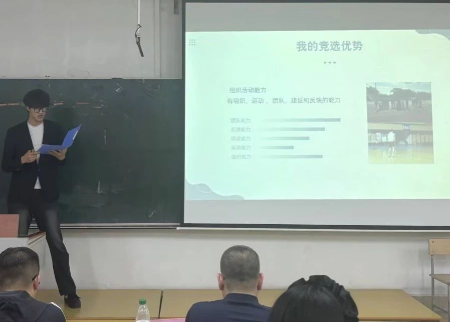 参与竞选的同学们依次上台发言,他们用精彩又深入浅出的演讲进行讲说,并使用PPT丰富直观地展现自己竞聘的优势。他们结合自身经历与优势,阐述对学生工作的理解与未来规划。精彩的演讲表现了竞选者们对学生工作的无限热爱与坚定决心,充分展现出竞选者们积极向上的精神风貌和扎实的工作能力。他们的发言也让大家对学生会各部门的工作有了更全面、深入的了解,也展现出学院学生干部认真负责、积极向上的精神风貌。