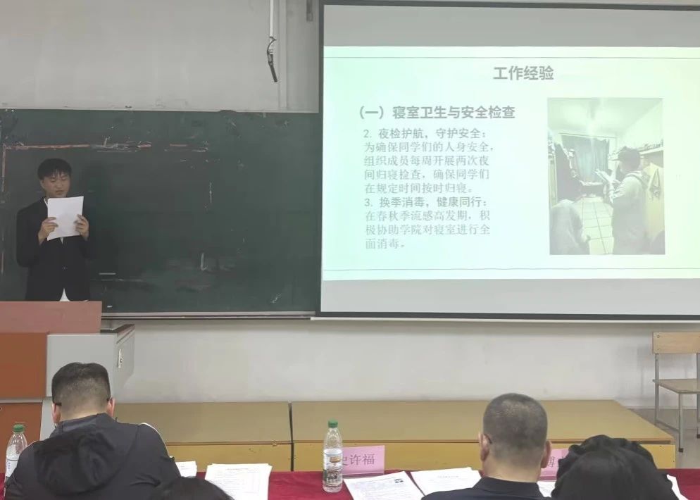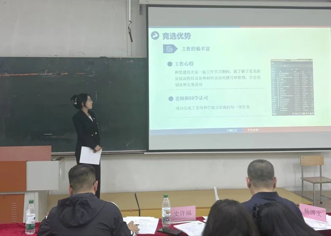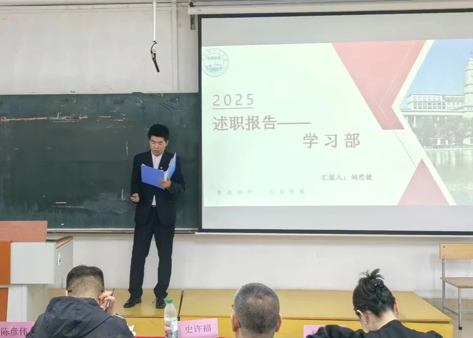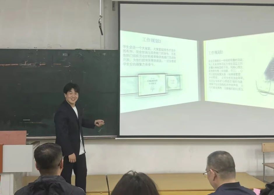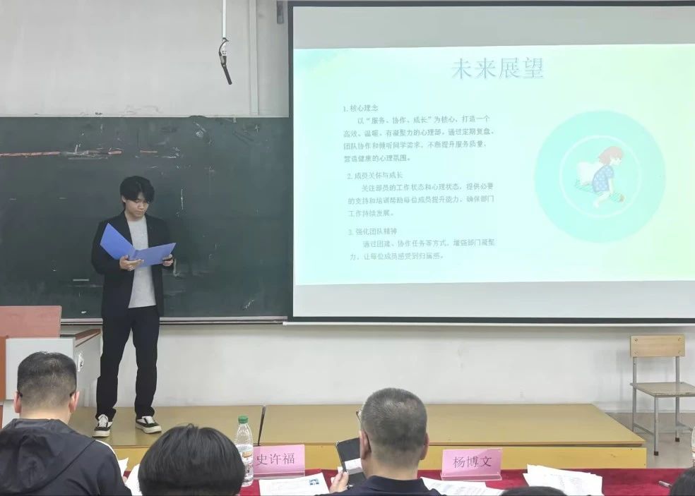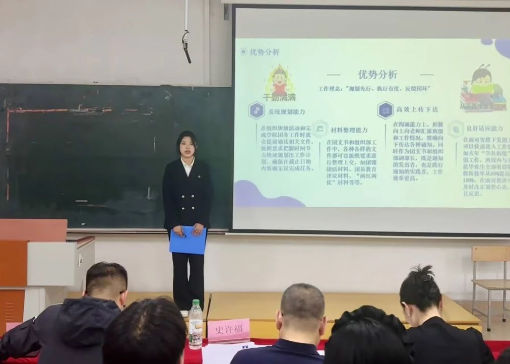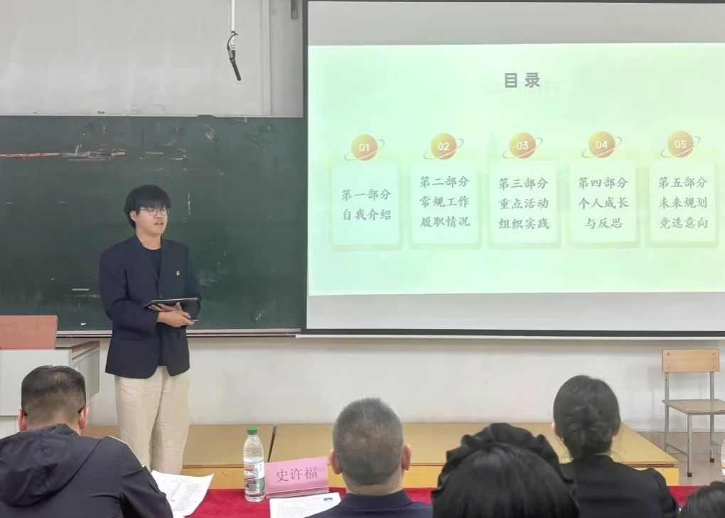 召开学生组织换届竞选大会。院党委委员、副处级辅导员史许福,学院学工办副主任、2023级辅导员陈彦伟,学院团委负责人、2024 级辅导员杨博文出席活动。学院全体学生干部参加活动。