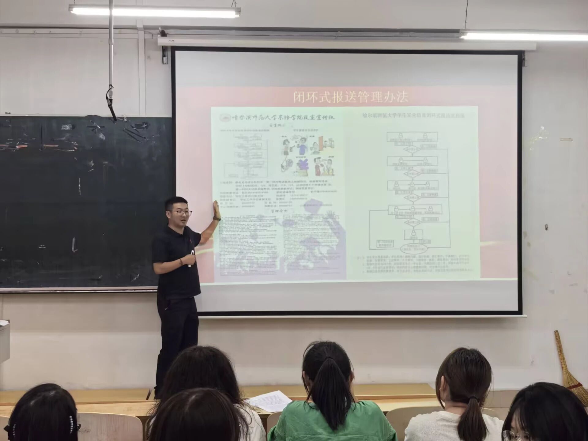 陈彦伟围绕交通安全、网络安全、寝室用电防火安全、人身财产安全以及心理健康教育这五大板块,系统全面地开展了新生安全教育。他结合真实案例,生动阐释了提高安全意识的紧迫性和必要性,并强调心理健康是快速适应大学学习生活的重要保障。随后,陈彦伟详细介绍了安全信息“闭环”管理制度的内涵与运作机制,明确了班级骨干、寝室长在信息报送中的职责与流程,鼓励大家主动担当“安全哨兵”,及时反馈、快速报告,共同维护校园安全稳定。