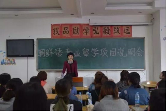 于4月19日下午2点在社科楼619教室举办了朝鲜语专业留学项目说明会。副院长金锦善、朝鲜语专业老师李楠老师以及部分有留学意向的朝鲜语专业学生参加了该次说明会。