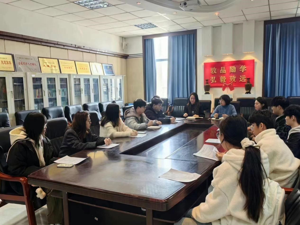 在社科楼313会议室召开2021级出国留学行前教育会。院长王琪出席会议并作指导讲话,日语系主任蔡雨、2021级辅导员杨博文、2021级10名即将赴日本留学的学生参加会议。会议由蔡雨主持。