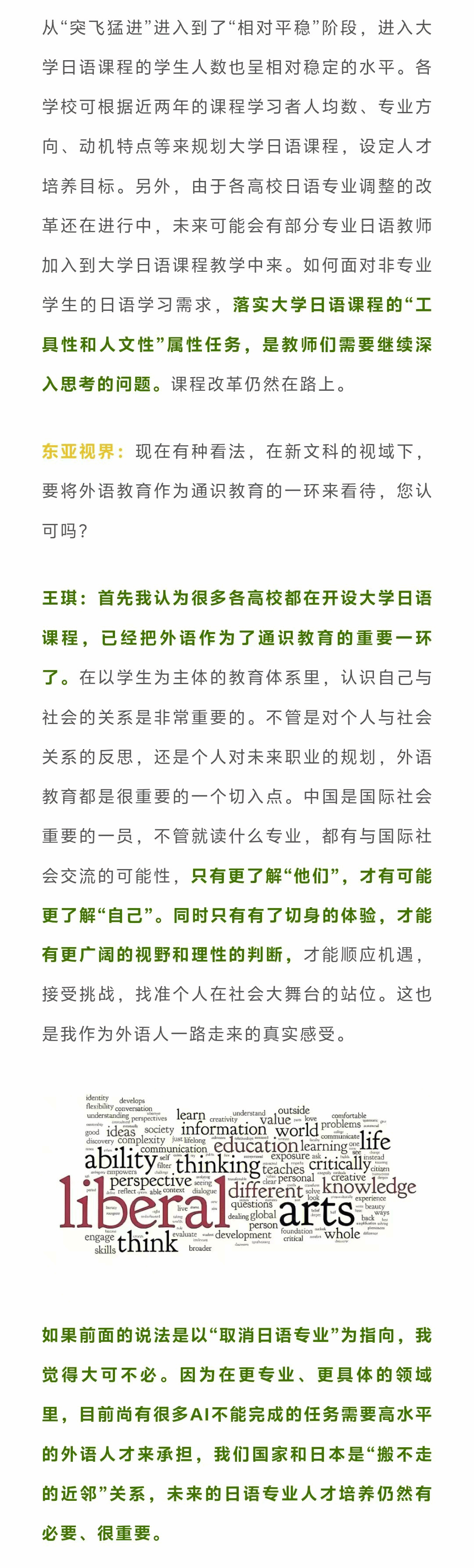 近日,搜搜啪 院长、学术型和翻译硕士研究生导师王琪教授接受东亚视界专访。她根据自身多年的日语教育经历对AI在日语学习中的意义与作用发表了自己的看法,充分展现了一位优秀日语教育者对如今日语教育的认识与思考,激励了更多人在日语学习与教学的道路上不断探索、砥砺前行。现转发东亚视界王琪专访推文,望各位日语学习者能够以其为榜样,为未来的日语教育领域贡献自己的力量。