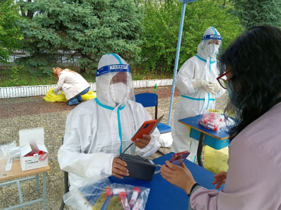 正处级辅导员王敬国、院办公室主任黄升民、院教科办谢欣阳、辅导员陈彦伟。他们自愿申请成为学校核酸检测的志愿者,在工作之余依旧用自己的力量守护着同学们。