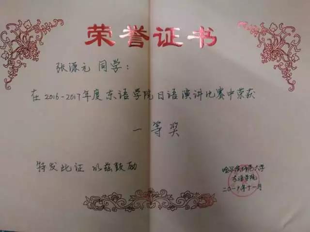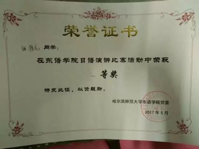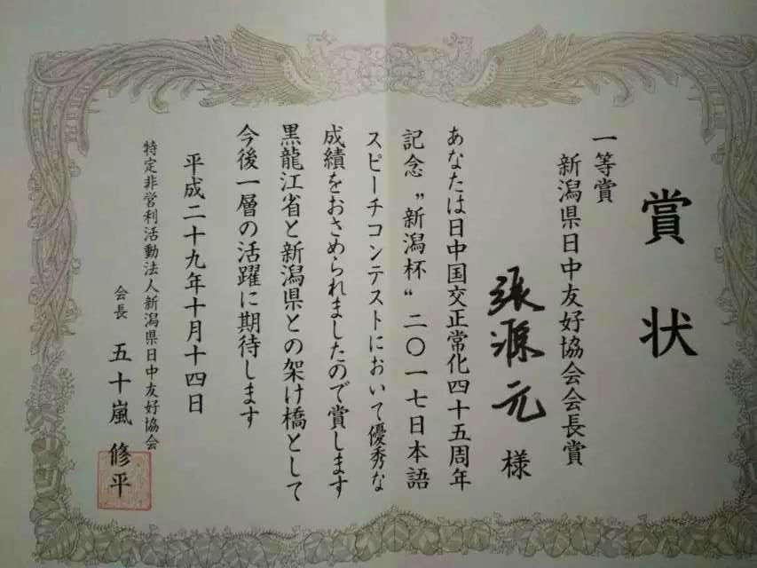 8.2017年10月 黑龙江省中日邦交正常化45周年“新潟杯” 2017日语演讲大赛 一等奖