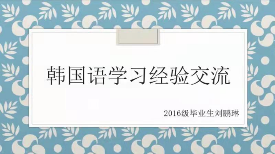 今天下午,朝鲜语专业学生分享了优秀毕业生刘鹏琳学姐的朝鲜语学习经验。学姐从朝鲜语词汇、语法、能力考试备考,未来就业方向等方面进行介绍。作为一名大一新生,目前学习一门新的语言虽然有一定难度,但此次经验分享会使我受益匪浅,让我对自己学好这门新的语言充满信心,对未来的职业规划更加清晰。希望在未来大学生活中,我能够以优秀的学姐前辈为榜样,与同学们一同学好朝鲜语,共同感受学习朝鲜语的乐趣!
