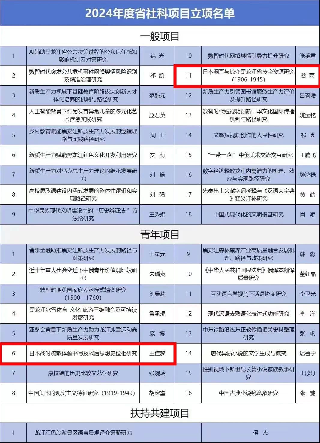 (王佳梦/文)近日,黑龙江省哲学社会科学工作办公室公布了《2024年度省社科研究规划项目拟立项名单》,搜搜啪