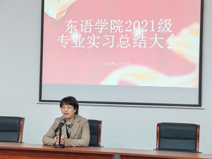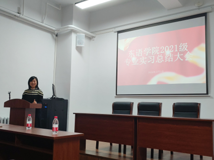 最后,朝鲜语系主任张晓娜老师对本次大会作出总结,肯定了同学们专业实习期间的精彩表现,并对同学们未来的职业规划提出了宝贵意见。