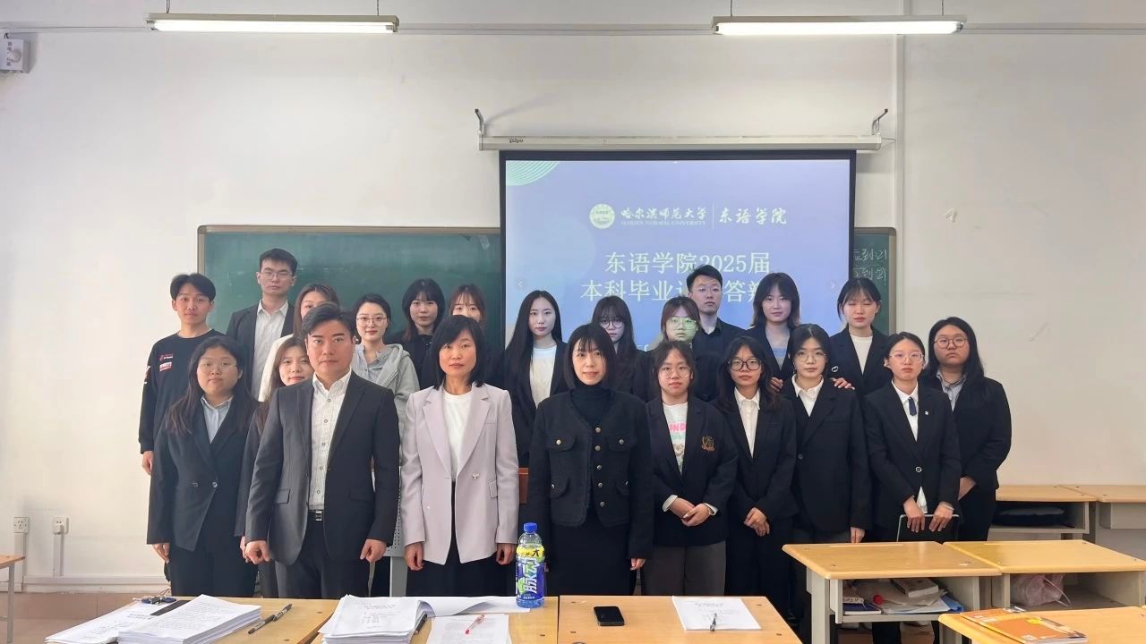 在社科楼成功举办了2025届日语、朝鲜语专业的本科毕业论文答辩会。本次答辩会以专业为单位,根据学生的研究方向划分为九个答辩小组,学院全体应届毕业生及专任教师共同参与。