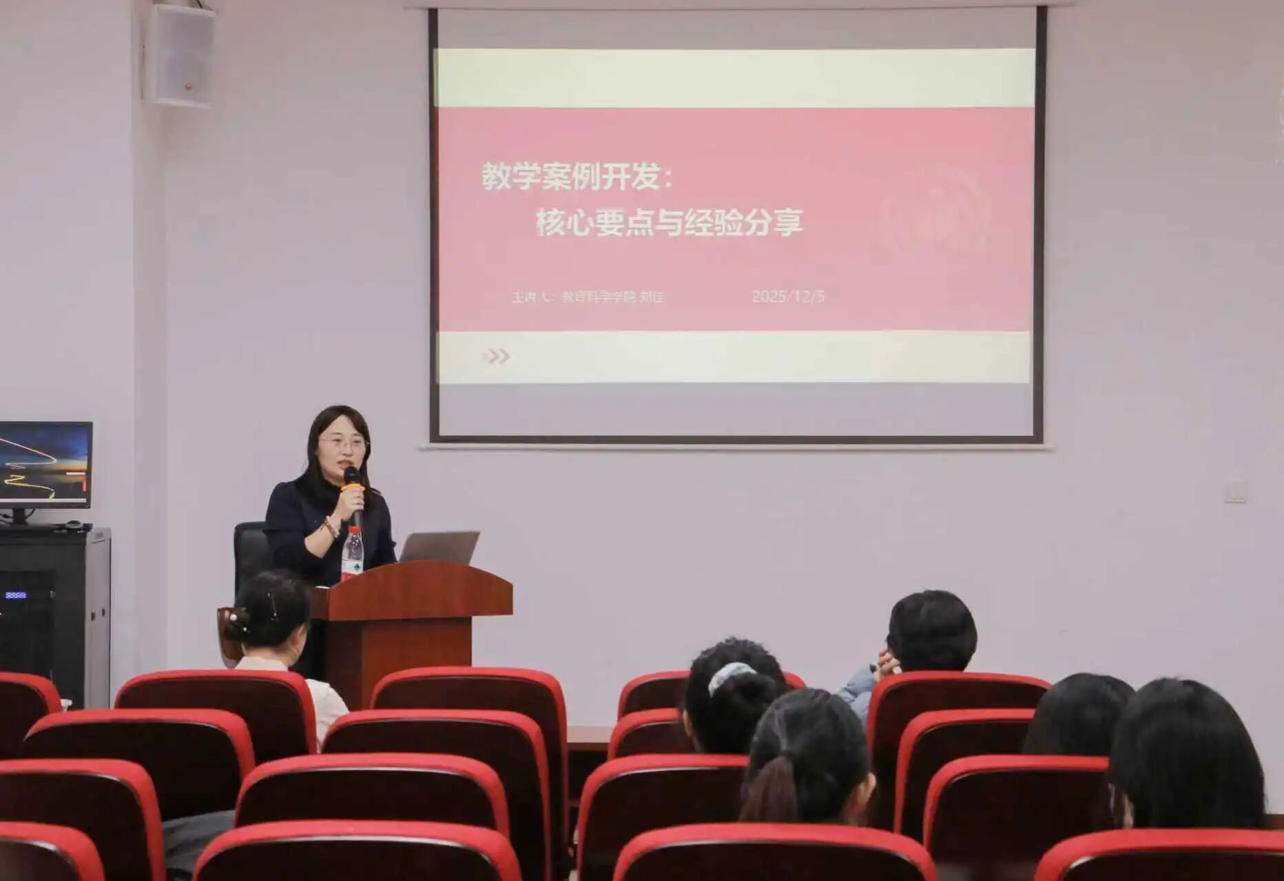 刘佳老师现任教育科学学院小学教育系副主任,长期从事小学数学教育教学与师范生培养工作,在案例开发和教学改革方面积累了丰富经验。讲座中,她围绕“案例开发流程”“精选案例解析”“实践应用技巧”三大模块,系统阐述了教学案例编写的逻辑路径与实践方法。
