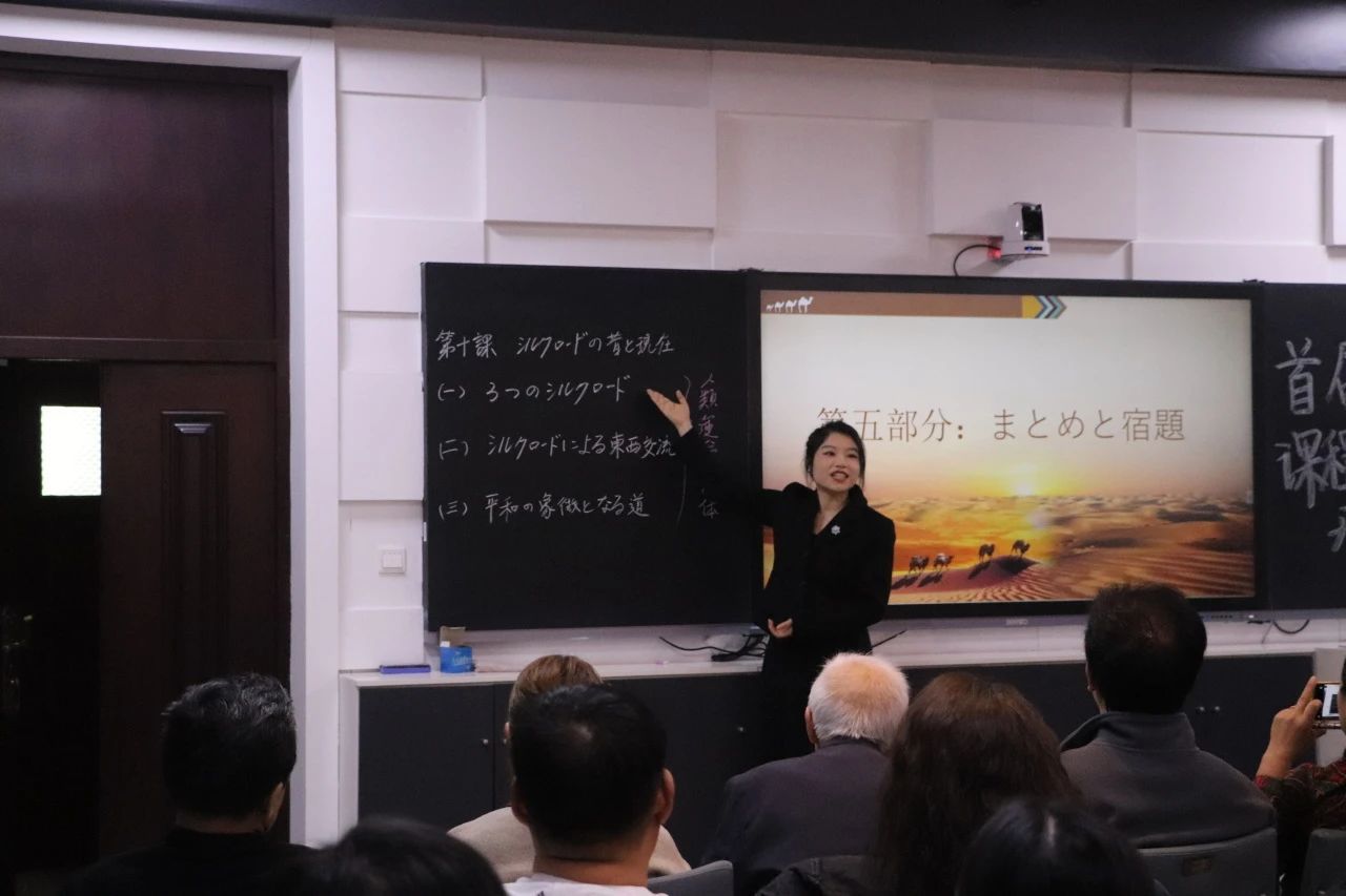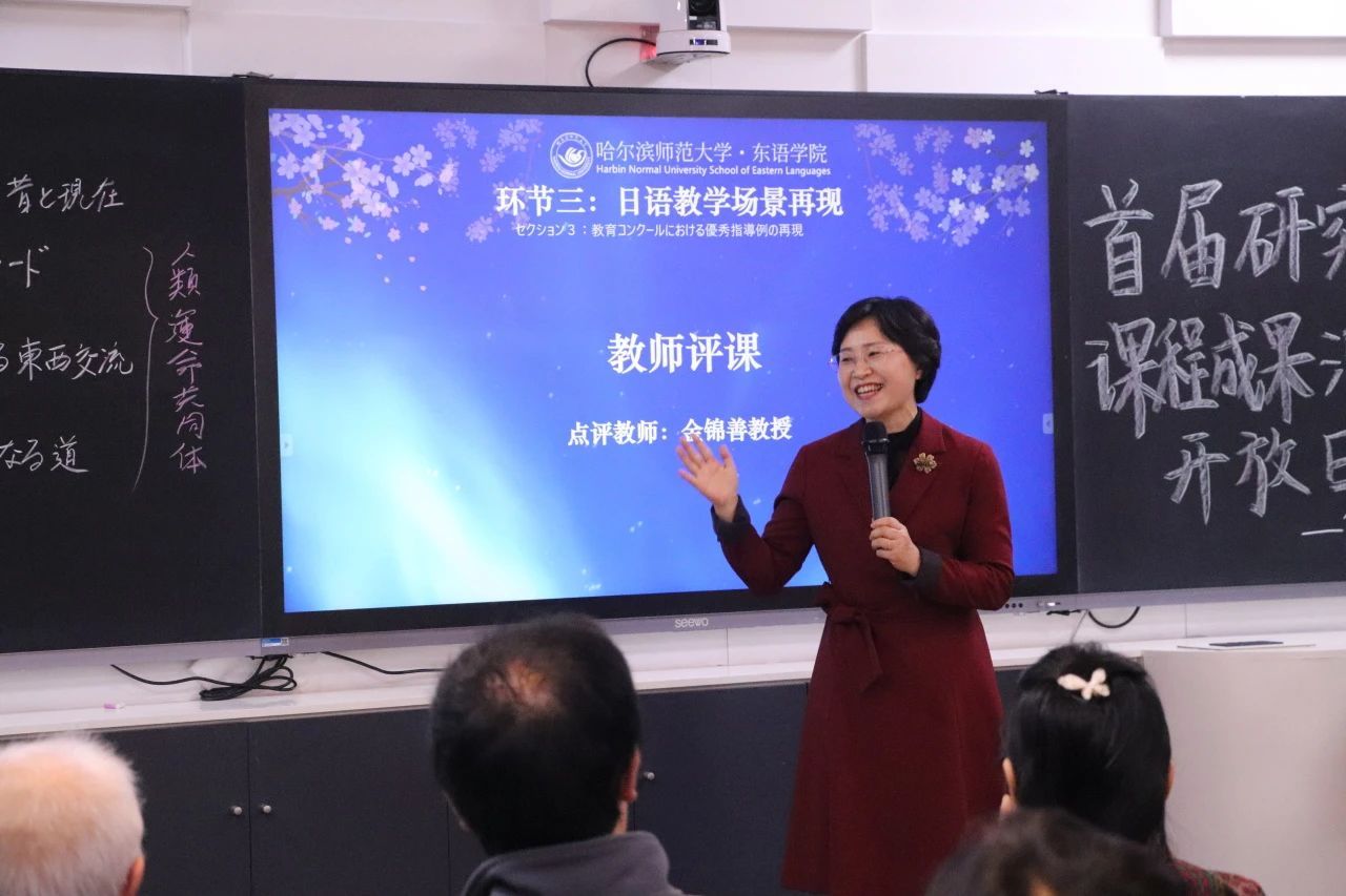 荣获校级教学法大赛一等奖的学术硕士二年级杨思思同学也在现场重现了教学场景,她扎实的日语基本功和清晰的逻辑讲解获得了师生们的高度赞赏,并得到了金锦善教授的点评与肯定。
