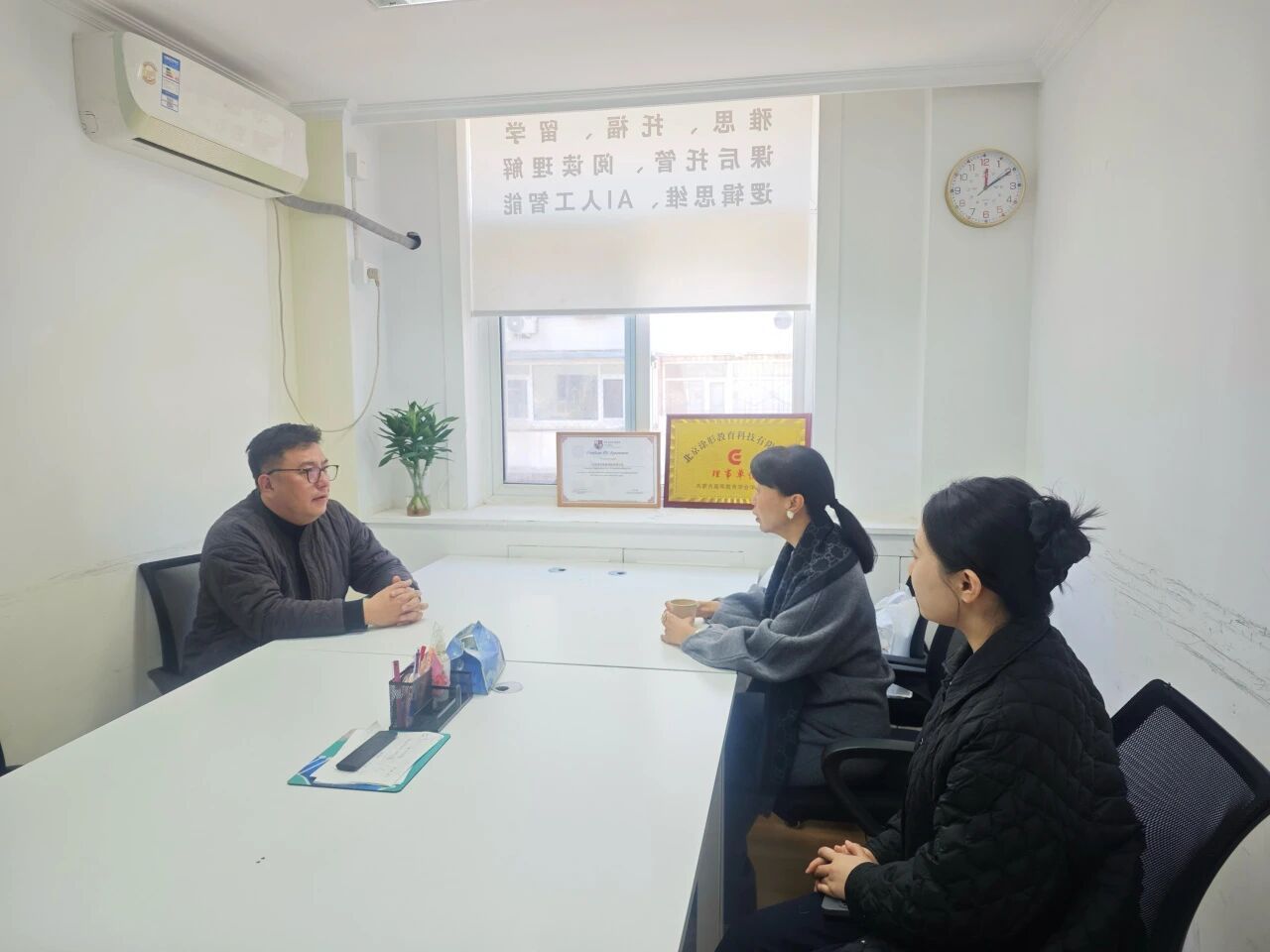 包志伟一行深入北京涂形教育及北京铁路大厦,与企业负责人围绕外语人才供需开展深度对接。包志伟全面介绍学院办学定位,强调学院始终以立德树人为根本,立足龙江教育资源辐射全国,构建人文素养、国际视野、实践能力三维培养体系,重点培育精通外语技能、兼具社会责任感与跨文化沟通能力的高素质人才,明确此次访企拓岗以毕业生高质量就业为核心目标,希望围绕实习实训、就业安置、人才定制培养等核心环节,搭建长期稳定的校企合作机制。